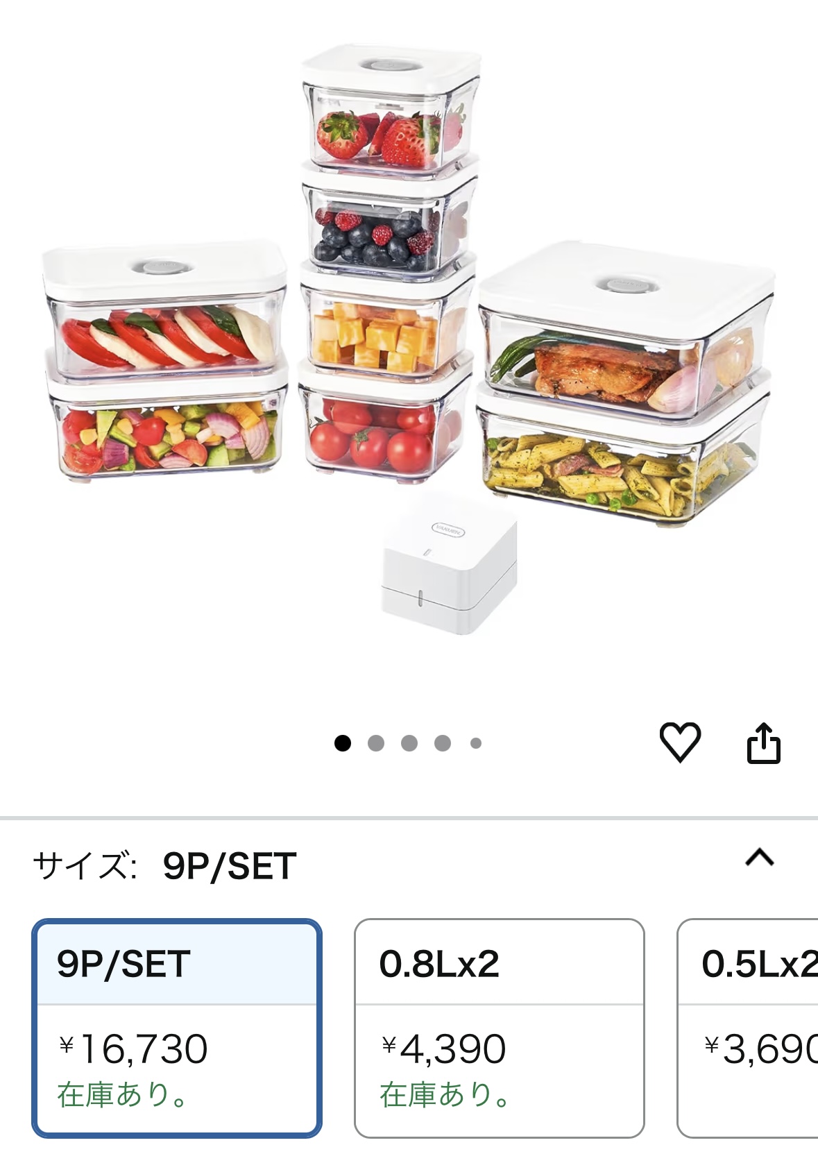 さて、VAKUENの真空保存容器を買おうと思うとサイズがいっぱいありすぎて迷いますよね~
